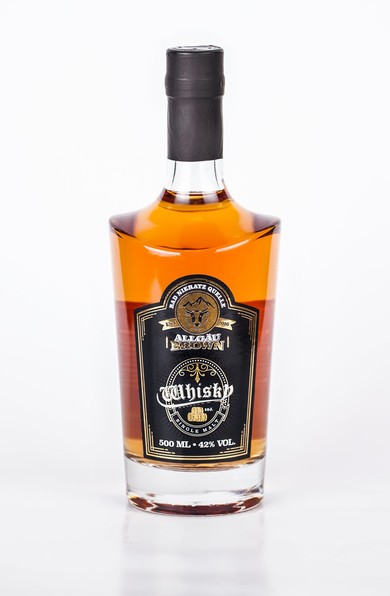 Der Allgäu Brown Single Malt Whisky ist ein wahres Erlebnis für echte Whisky-Genießer und Allgäu-Liebhaber. Der edle Tropfen wird lokal, nur mit erlesenen Zutaten und nach alter Handwerkstradition gefertigt. Seinen klaren, kräftigen Geschmack entwickelt der Single Malt während seiner langjährigen Reifung: zwei Jahre lang ruht er in amerikanischen Weißeiche-Fässern, bevor er für weitere sechs Jahre auf französische Weinbarriques aus Limousine-Eiche umgebettet wird. Abgerundet wird der Reifeprozess durch zwei weitere Jahre Lagerung in Sherry- und Portwein-Fässern, währenddessen der Whisky sein einzigartig aromatischer Charakter entfaltet. Anschließend werden die besten Stücke von Brennmeister Martin Meier in einer kleinen Allgäuer Destillerie, zusammen mit hochwertigen Quellwasser aus der Bad-Nieratz-Quelle, verarbeitet, dessen Wasser bereits im 18. Jahrhundert als Heilwasser für häusliche Trinkkuren zum Einsatz kam. Diese Symbiose aus edlem, 10-jährig fassgereiftem Whisky, dem hochwertigem Quellwasser aus der Region und der jahrzentelangen Erfahrung unseres Brennmeisters ist es schließlich, was die Destillate von Allgäu Brown auszeichnen und sie zu Produkten der absoluten Premium-Klasse machen. | ||